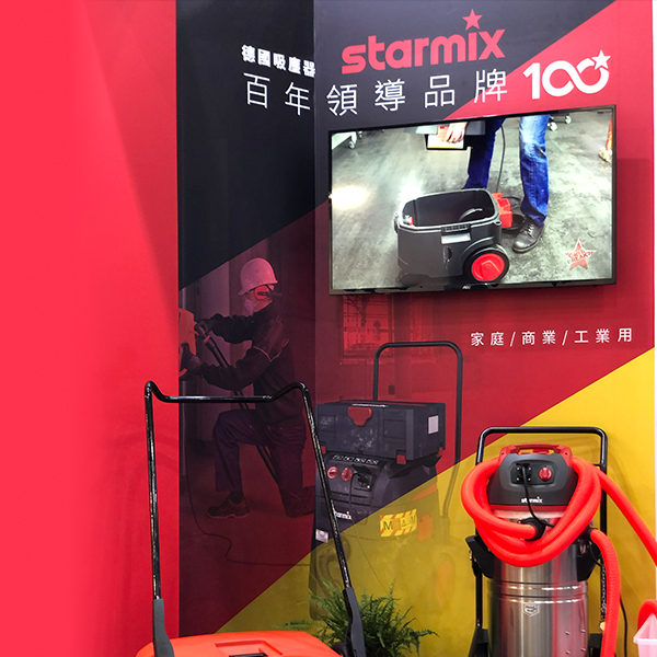 首度在南港展覽館參與台北國際建築建材暨產品展,展示多款工業用、商業用、乾溼兩用和乾溼吹三用的專業吸塵器,以及最耐操的掃地機,讓參觀民眾實際體驗到德國Starmix吸特樂領先全球的眾多專利科技,也讓大眾暸解到用對設備能大幅降低粉塵對人體的危害,落實日益受到受重視的職業安全健康議題。