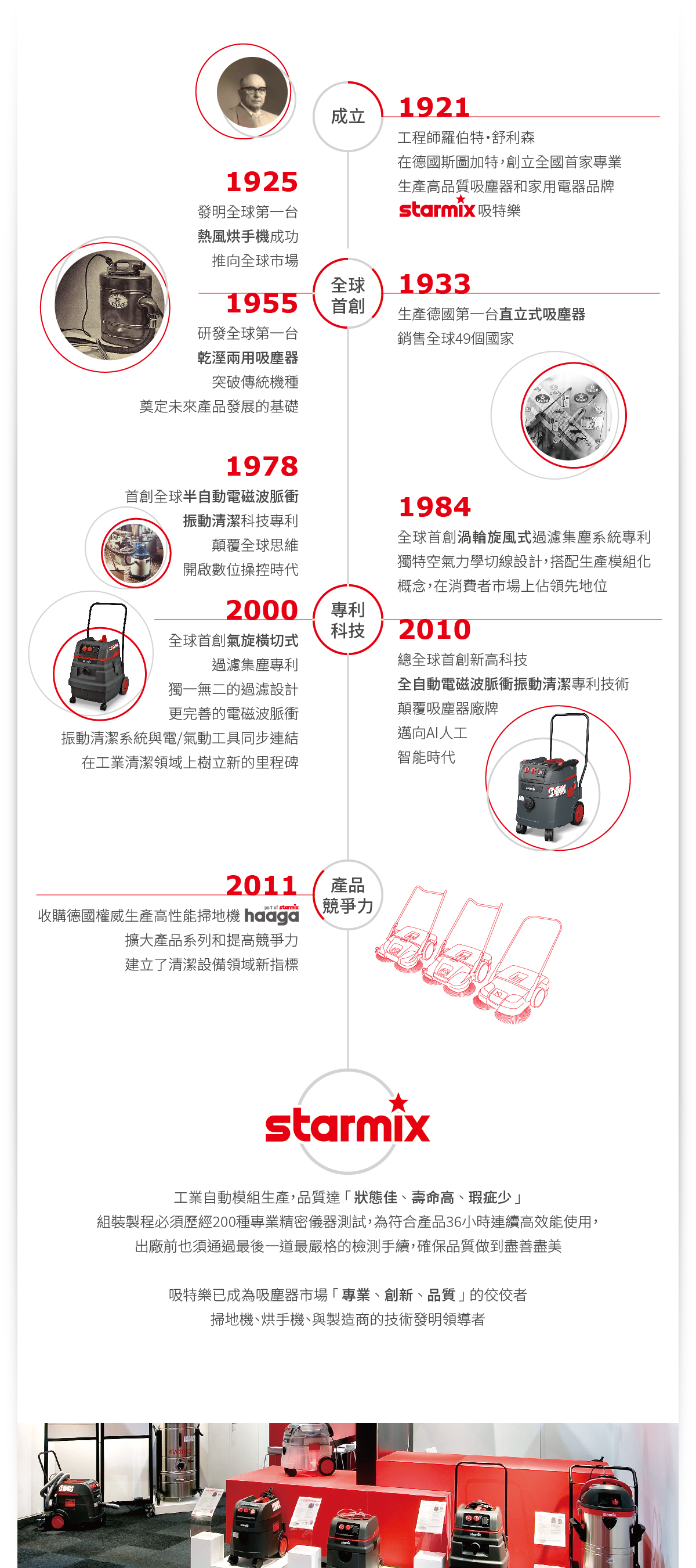 吸特樂創立於1921年到至今,是全球前三大工商用吸塵器製造商之一,用100多年的時間,堅持做好一件事。
