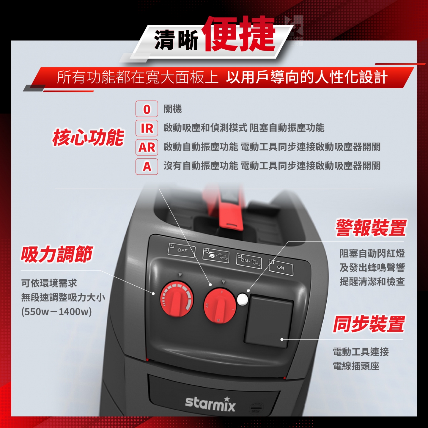 | 吸力調節 | 可依環境需求無段速調整吸力大小(550~1400w)。 |