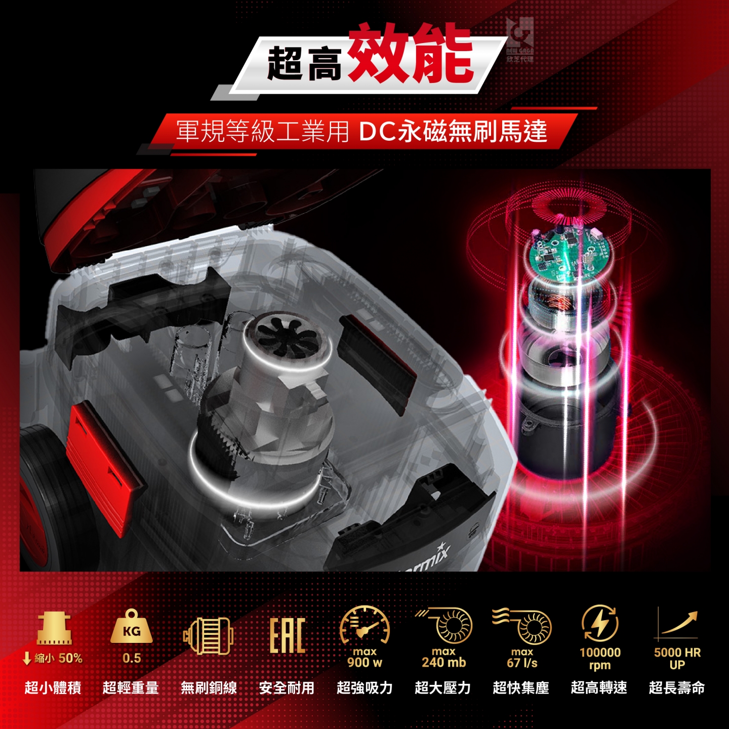 | 無刷馬達 | 純銅導線、安全耐用、超強吸力、超大壓力、超快集塵、超高轉速、超長壽命。 |