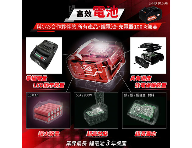 | 高效續航 | 專利氣冷式散熱技術的鋰電池和充電器,具有過度充放電保護裝置,高效能、快充電和長壽命。 |