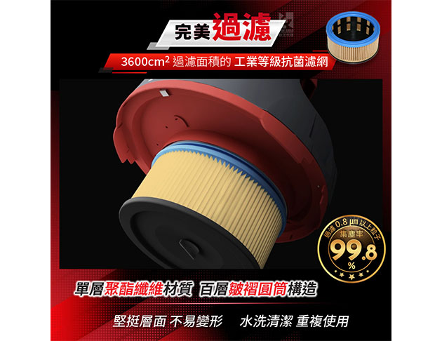 ★ 過濾集塵%:99.8%(0.8微米以上粒子)