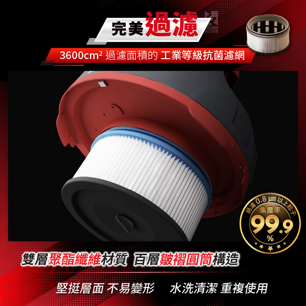 ★ 過濾集塵%:99.9%(0.8微米以上粒子)