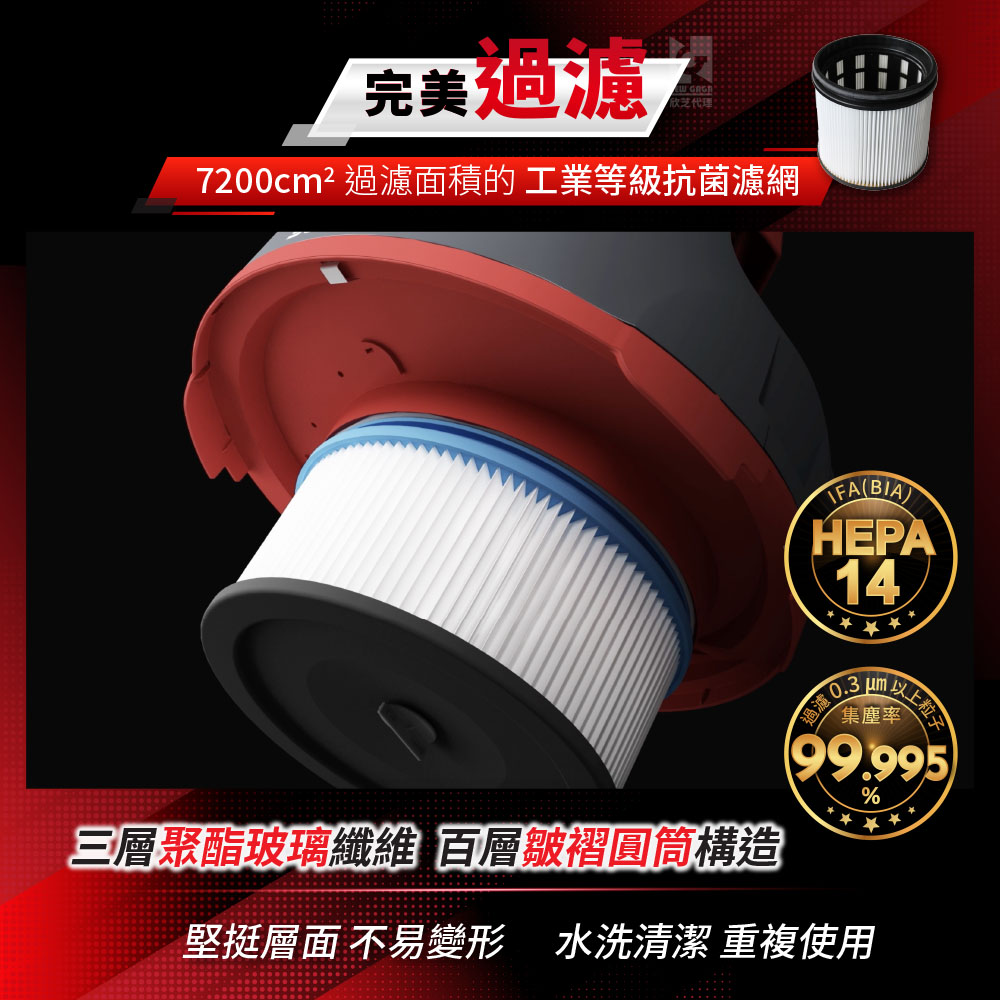 ★ 過濾等級class:HEPA 14 級(德國職能安全健康機構IFA(BIA)認證)