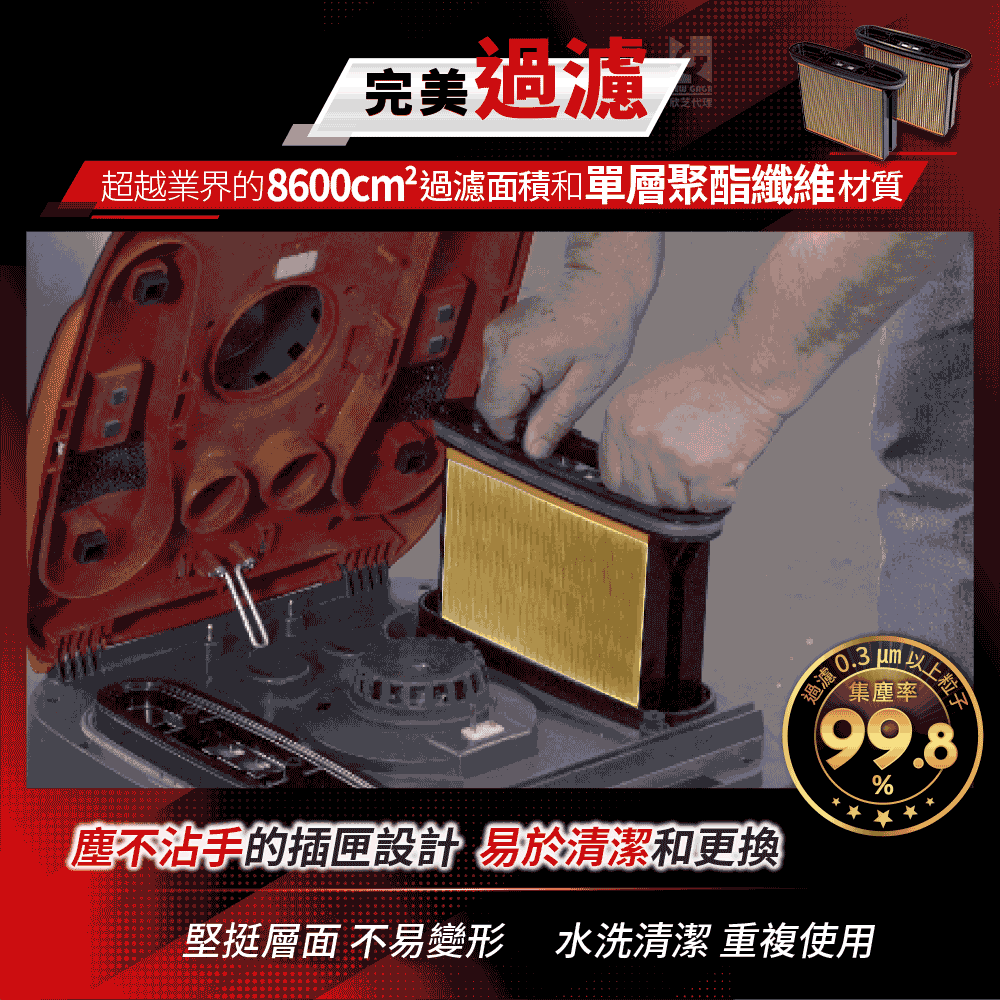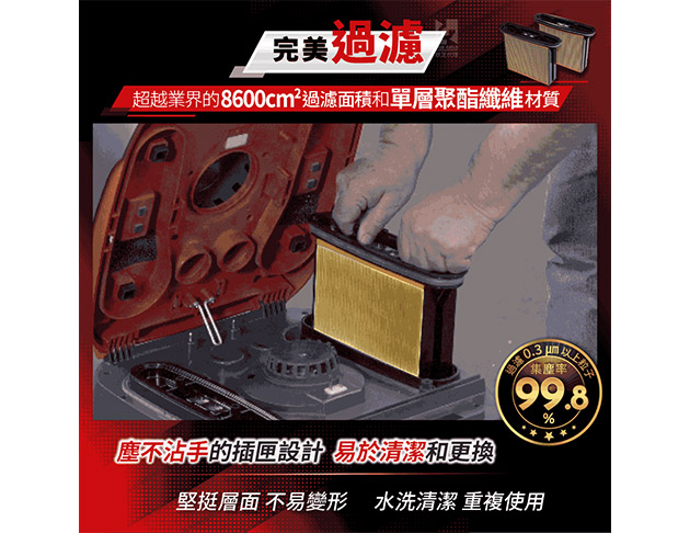 ★ 過濾集塵%:99.8%(0.3微米以上粒子)