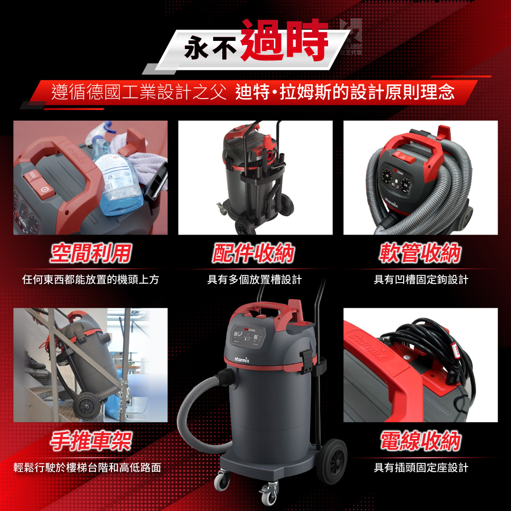 | 乾溼吹用 | 乾溼發明者,吸塵、吸水、吸油、吸酸、吸鹼及215km/h的強勁吹風,不再只有吸塵。 |