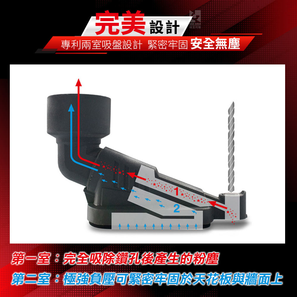 - 無塵鑽孔集塵‧專利兩室吸盤