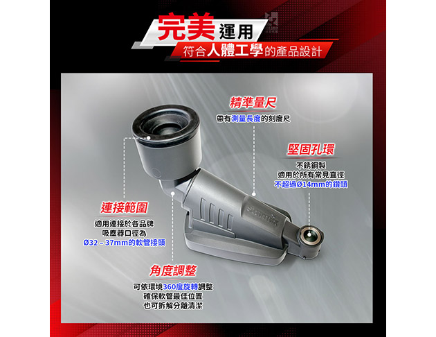 ★連接口徑mm:Ø32 – Ø37(連接各品牌吸塵器軟管接頭)