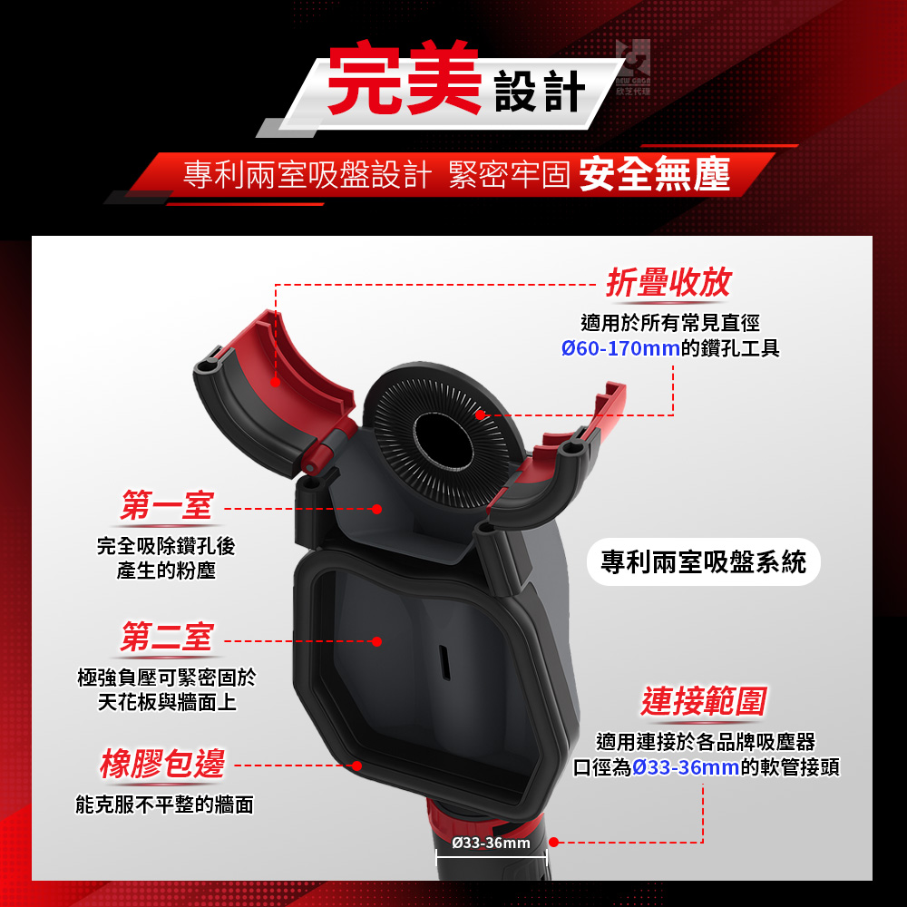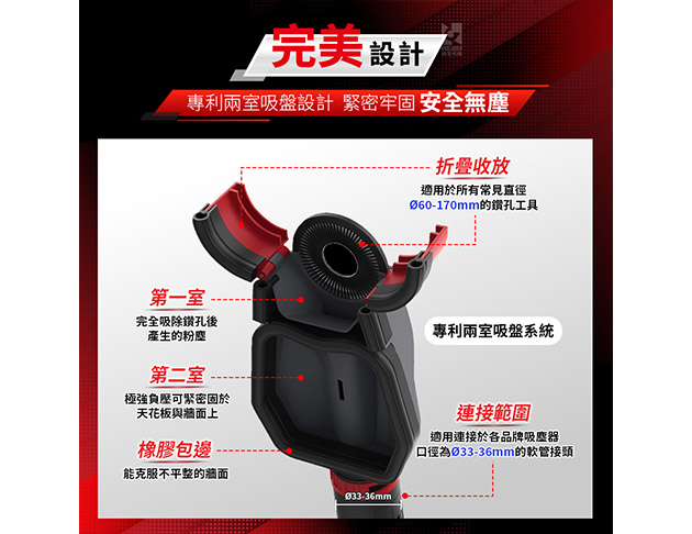 - 無塵鑽孔集塵‧專利兩室吸盤