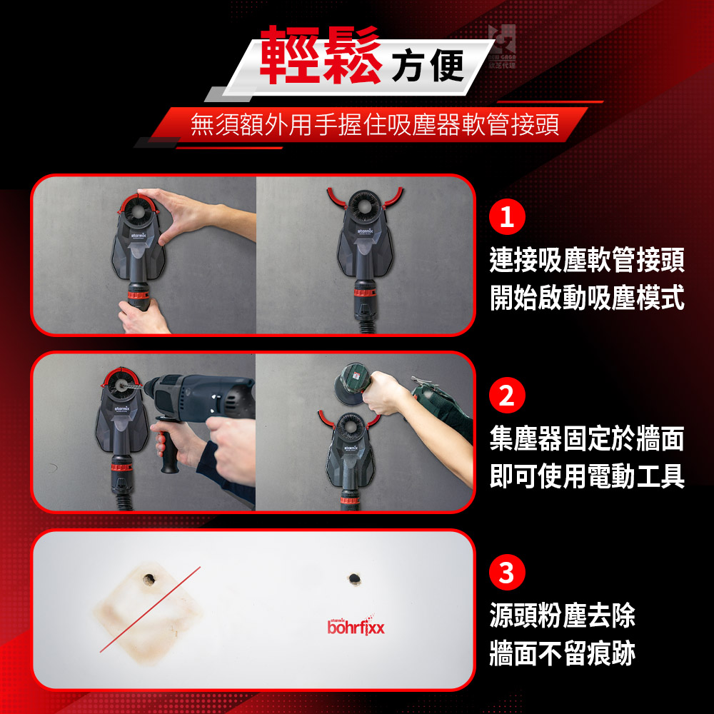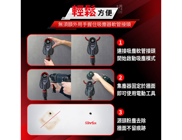 【Bohrfixx 60 Plus】兩室吸盤型大範圍無塵鑽孔集塵器