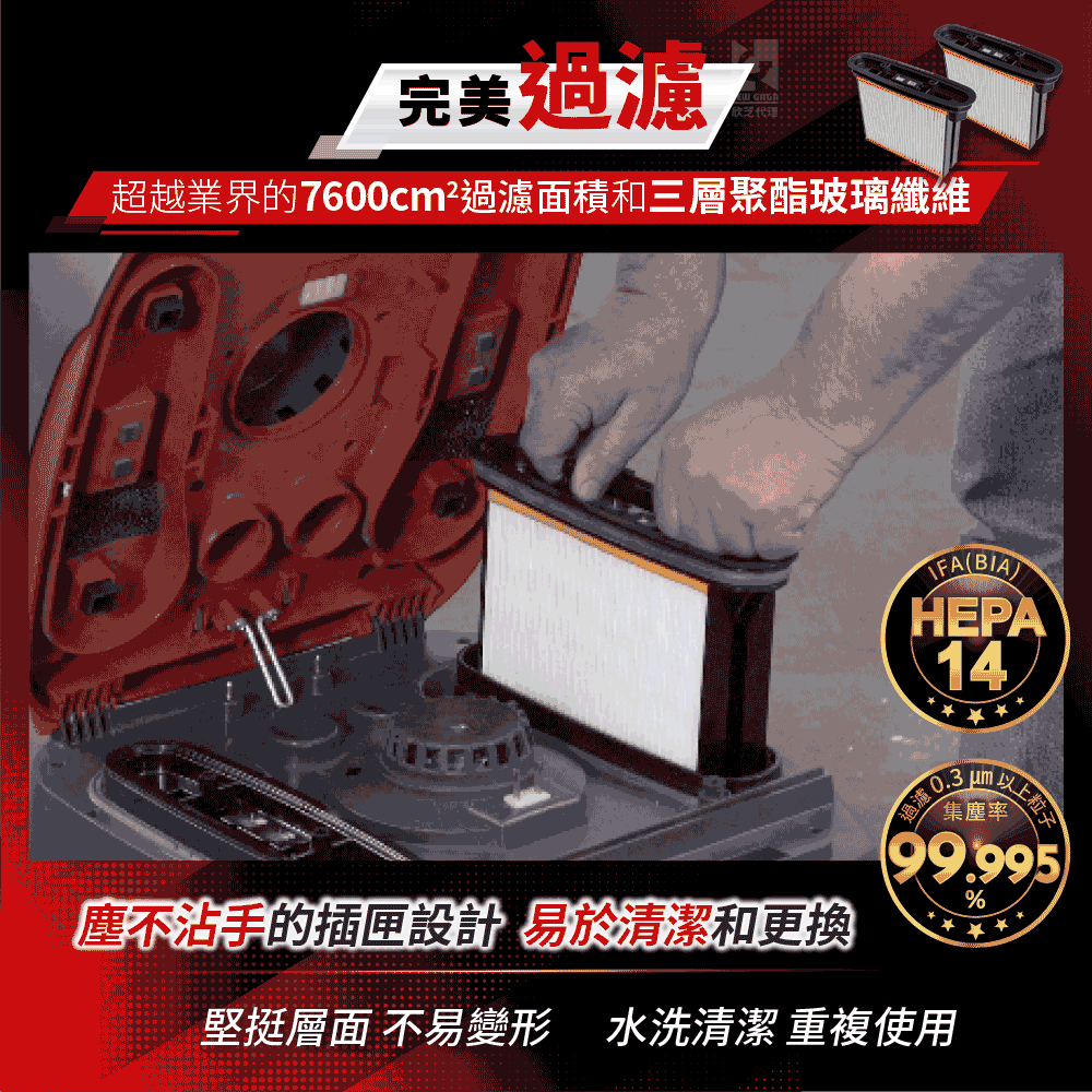 ★ 過濾等級class:HEPA 14級(德國職能安全健康機構IFA(BIA)認證)