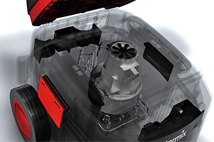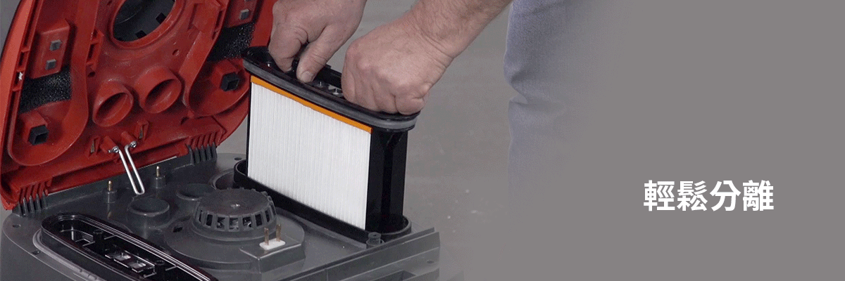 | 氣旋橫切 | 全球首創專利『氣旋橫切式』過濾集塵系統設計,濾網位置與馬達軸平行,搭配強而有勁的氣旋吸力,能達到100%的高效集塵,並排放出100%的乾淨空氣,濾網易於清潔和更換,取出時灰塵不沾手。 |