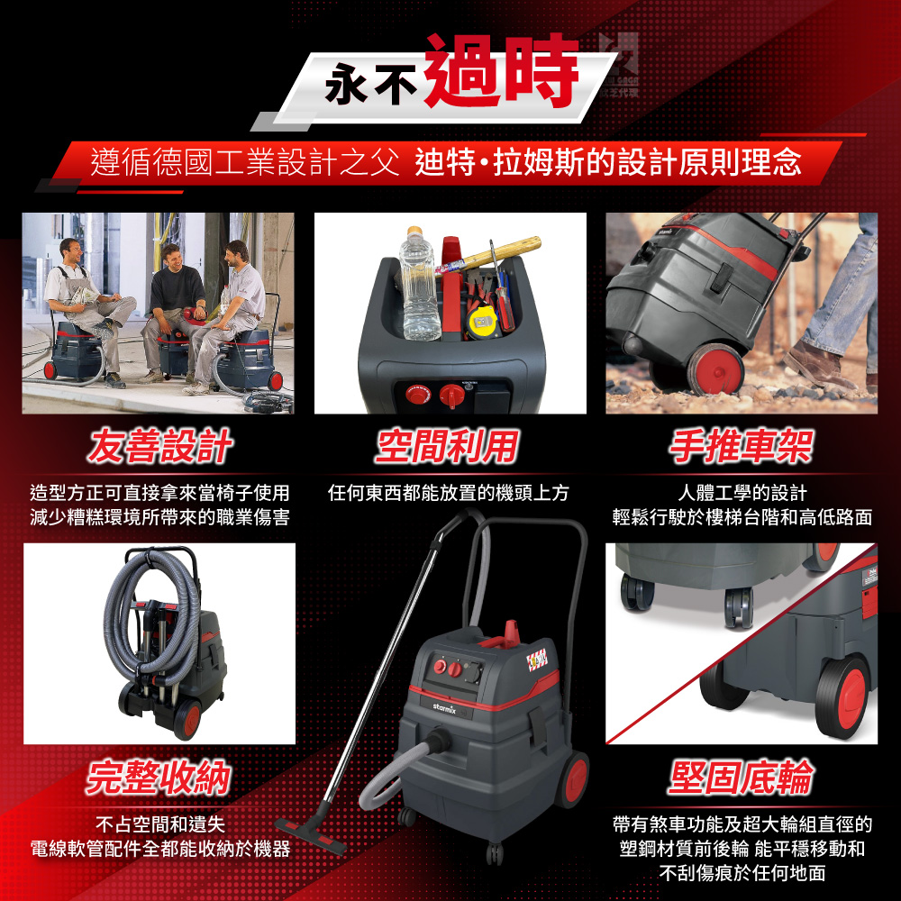| 乾溼兩用 | 乾溼發明者,吸塵、吸水、吸油、吸酸、吸鹼,不再只有吸塵。 |