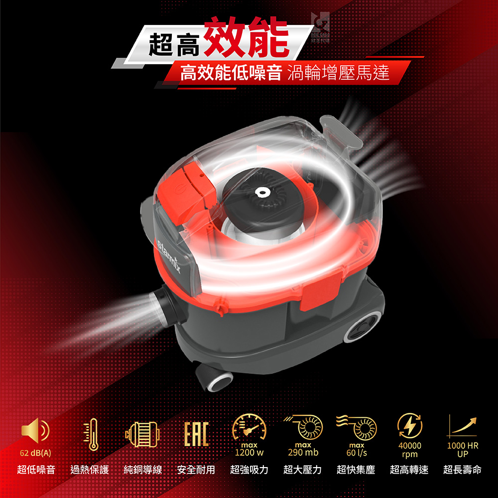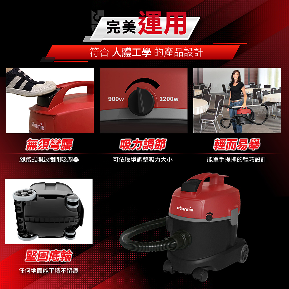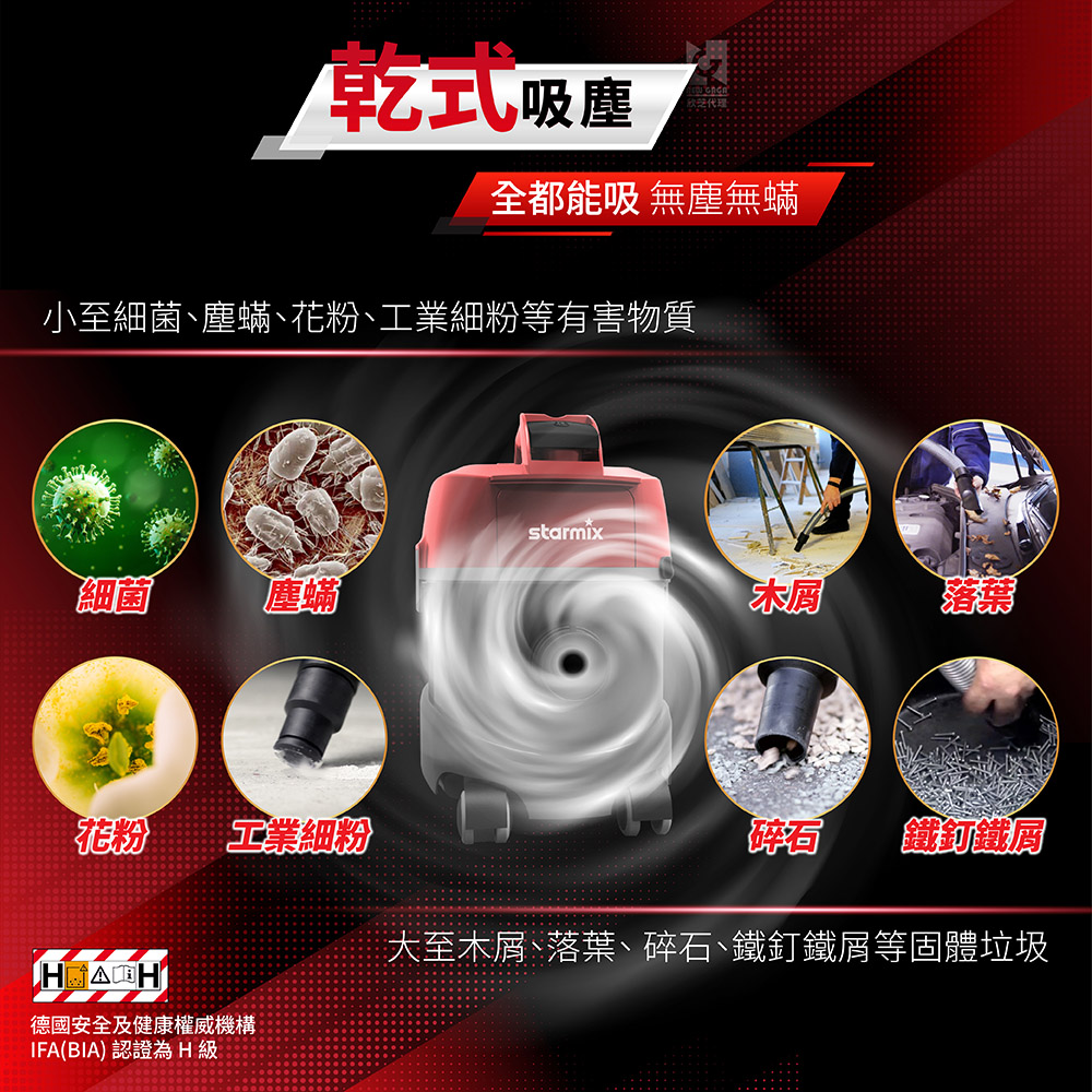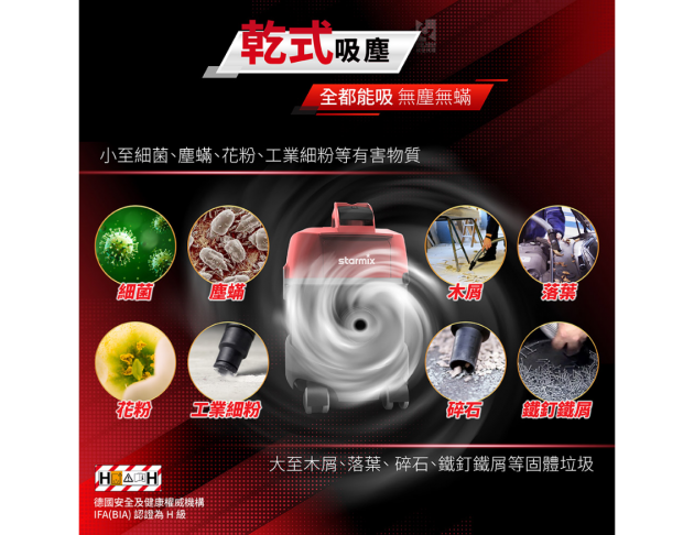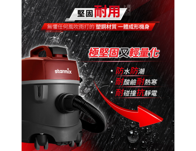 | 台灣限定 | 專為台灣市場設計的工商用抗螨型乾式吸塵器。 |