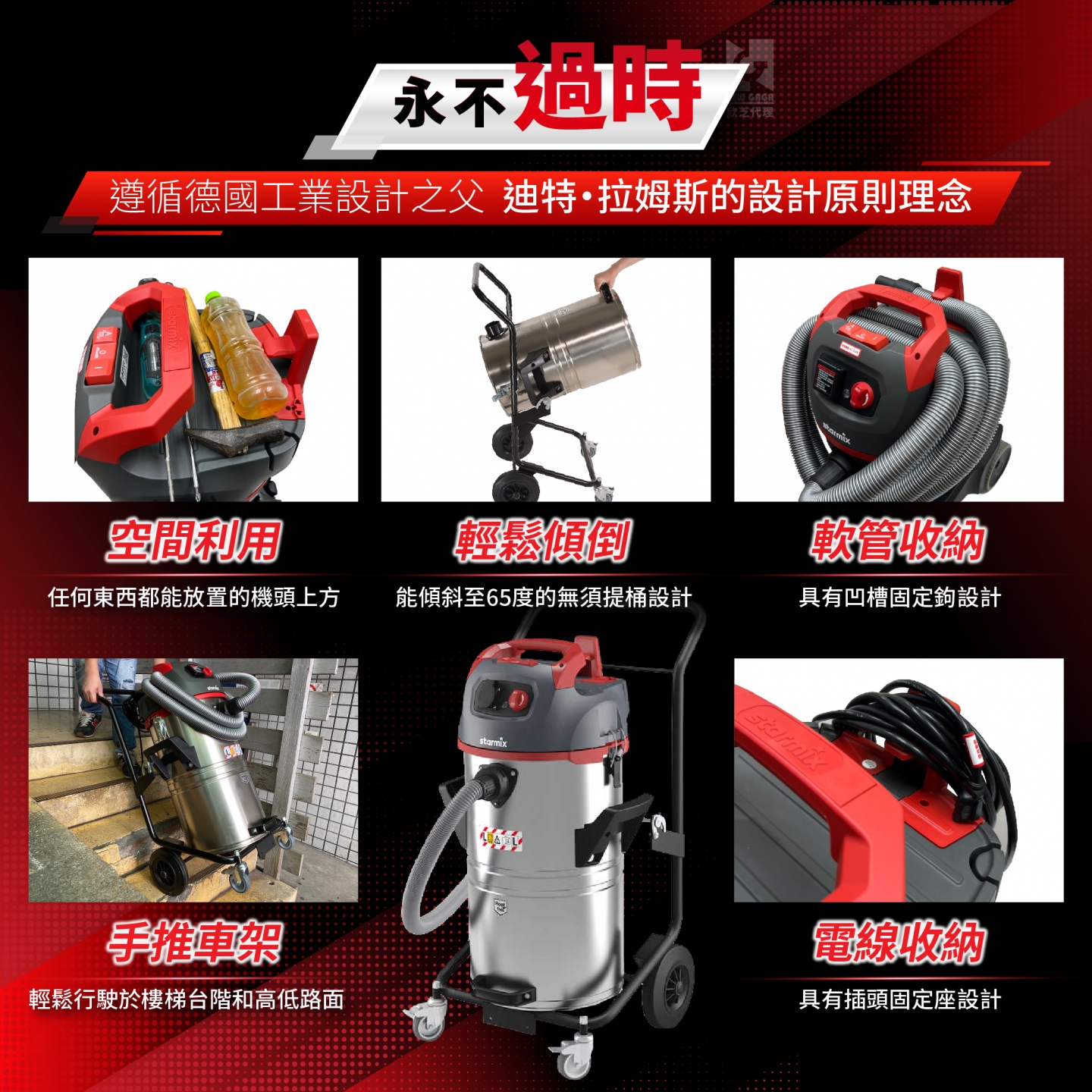 | 乾溼吹用 | 乾溼發明者,吸塵、吸水、吸油、吸酸、吸鹼及215km/h的強勁吹風,不再只有吸塵。 |