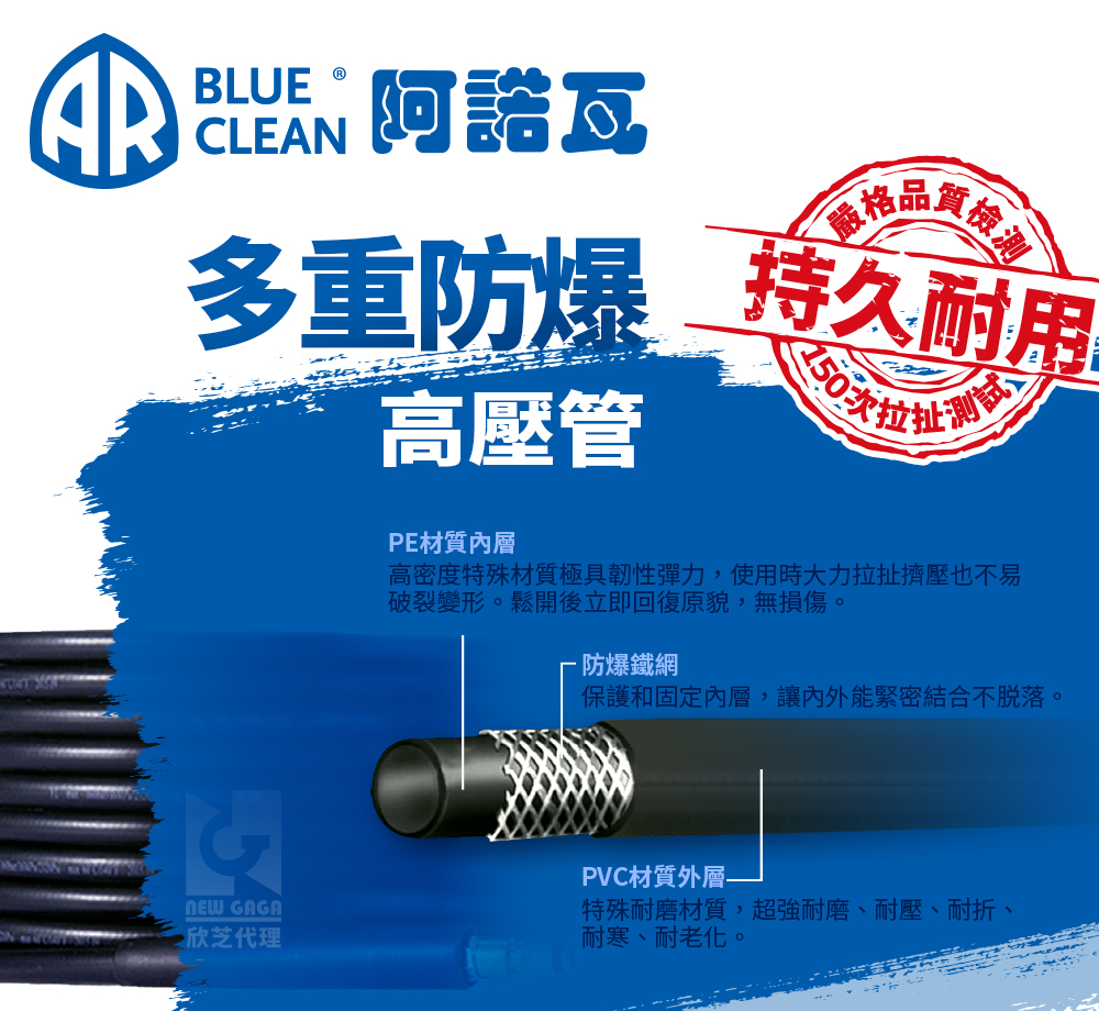 | 防爆水管 | 歷經最嚴格拉扯測試的3層耐磨材質高壓水管,耐破裂、耐擠壓、耐熱寒。 |