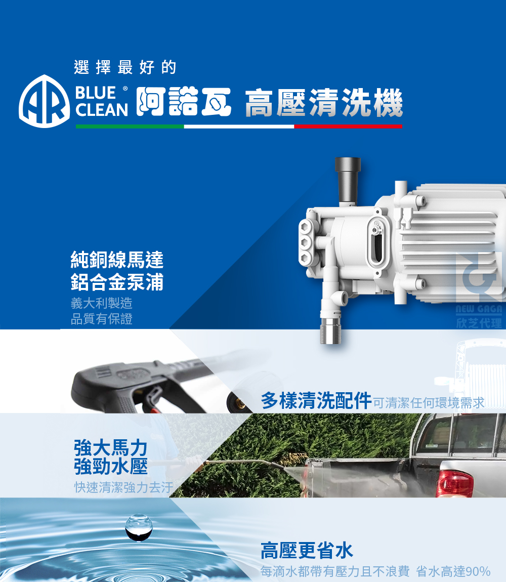 | 卓越泵浦 | 義大利製斜盤式泵浦,鋁製頭3軸鍛造不銹鋼活塞,具有自動洩壓關閉安全閥裝置。 |